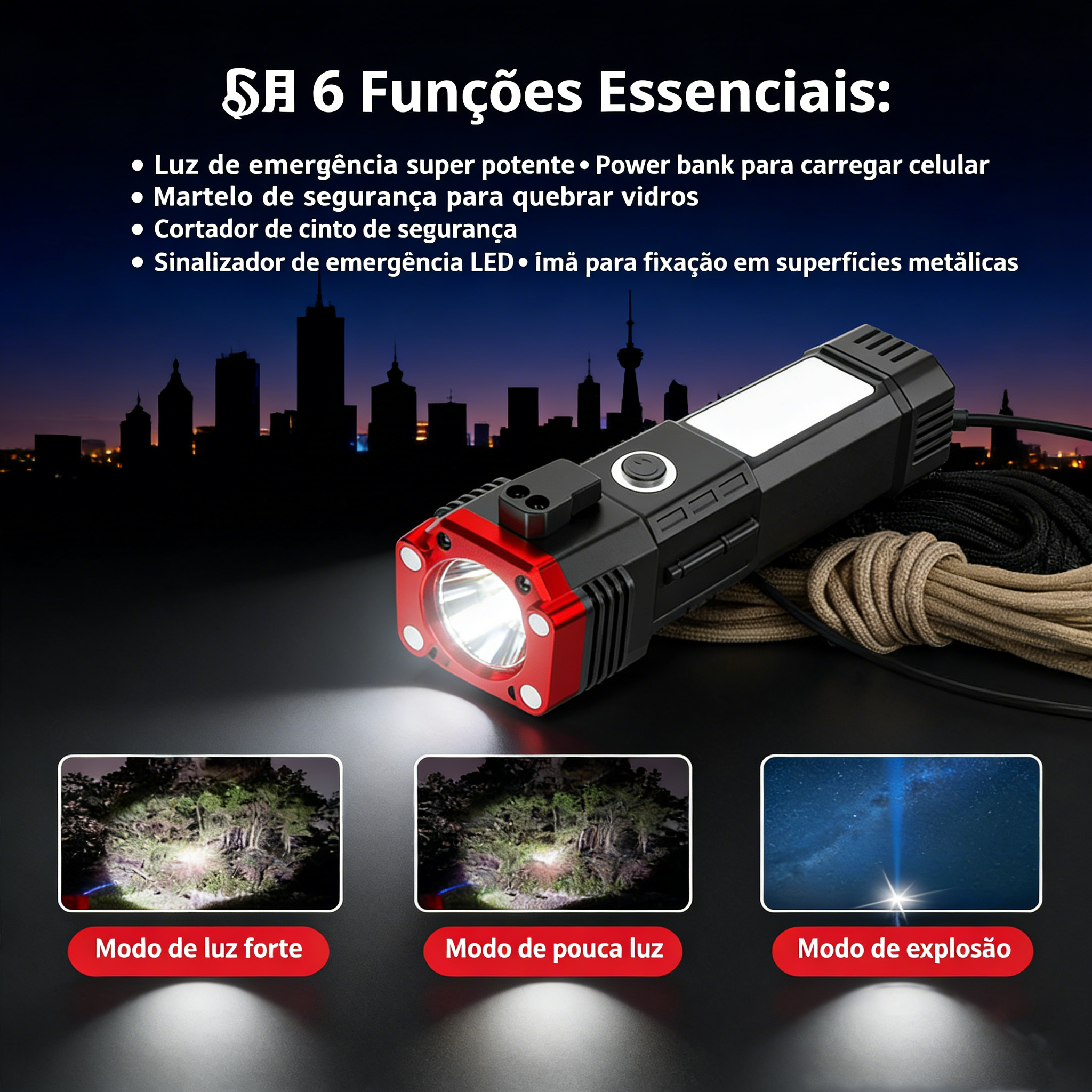 🔦Lanterna de emergência 6-em-1 com luz forte