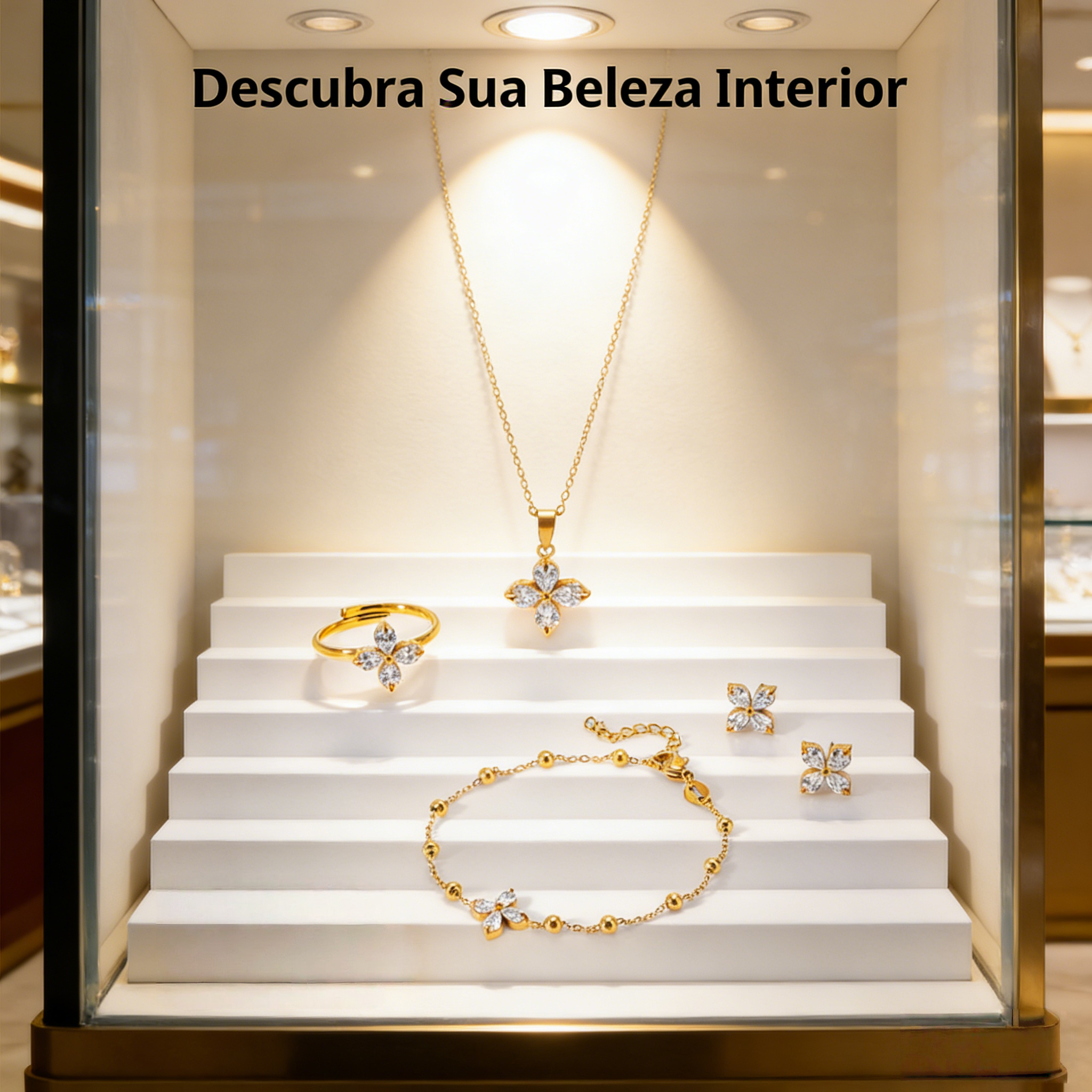Sorte que Brilha, Luxo que Dura: Nossas joias não são apenas acessórios — são o símbolo da sorte e da felicidade que você merece, o luxo acessível para o dia a dia em Luanda, e a qualidade que resiste ao clima tropical, para que você brilhe em cada momento, sem compromisso.