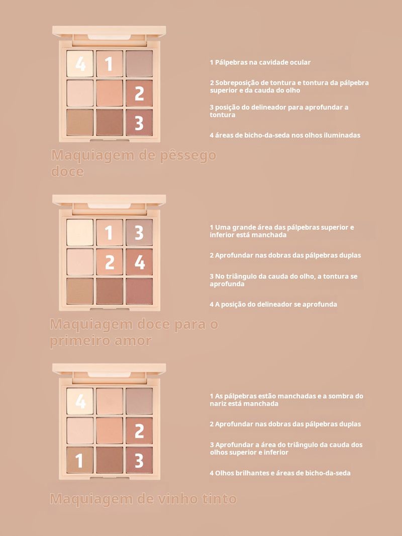 Palette de Sombras 9 Cores - Tons Diários e Festa!