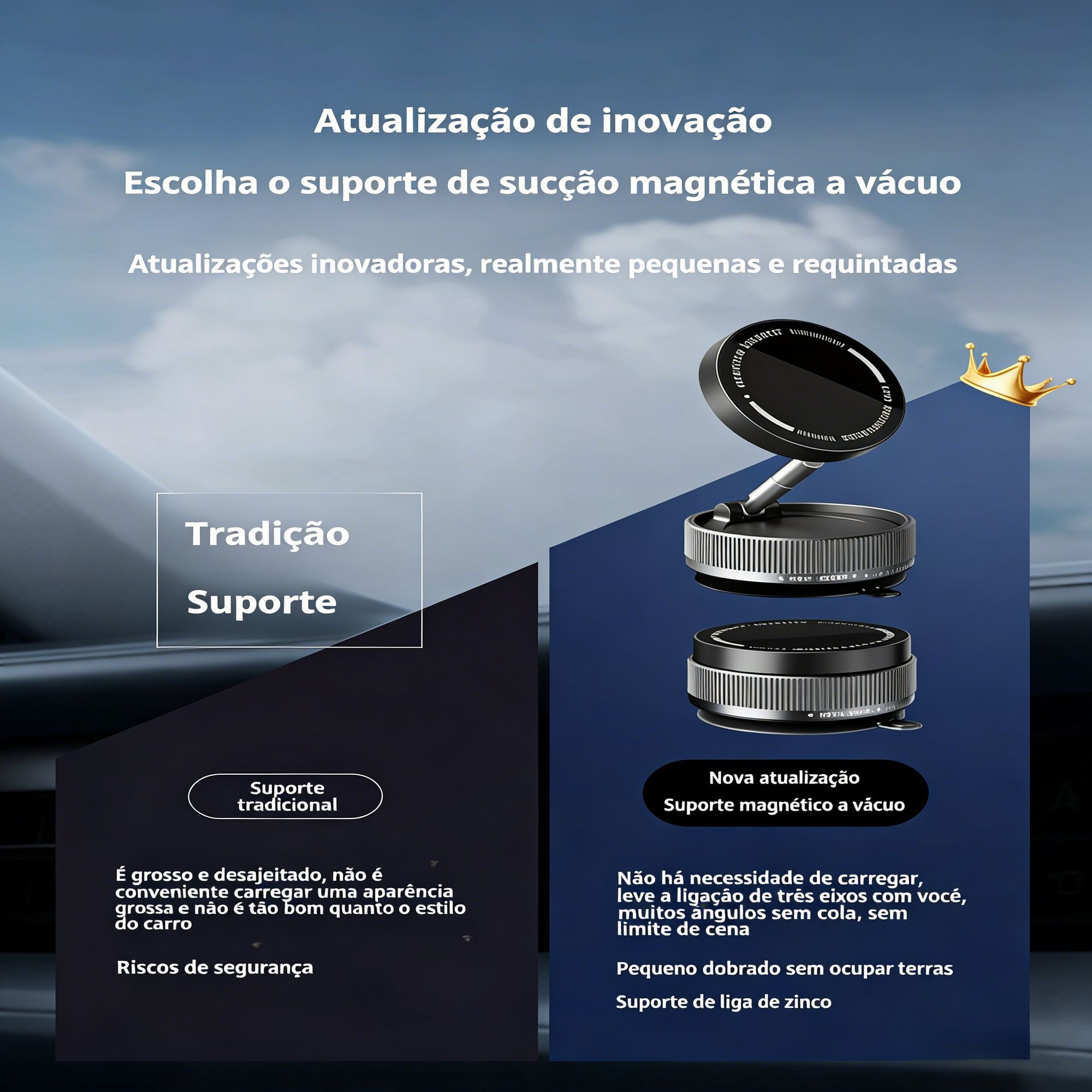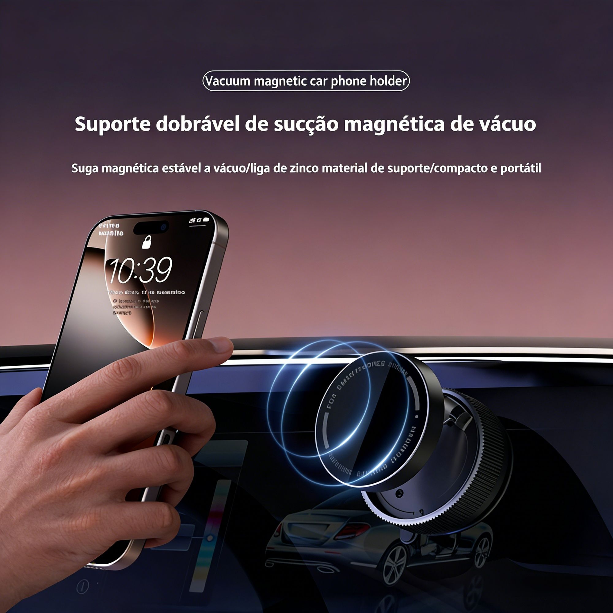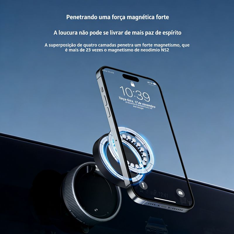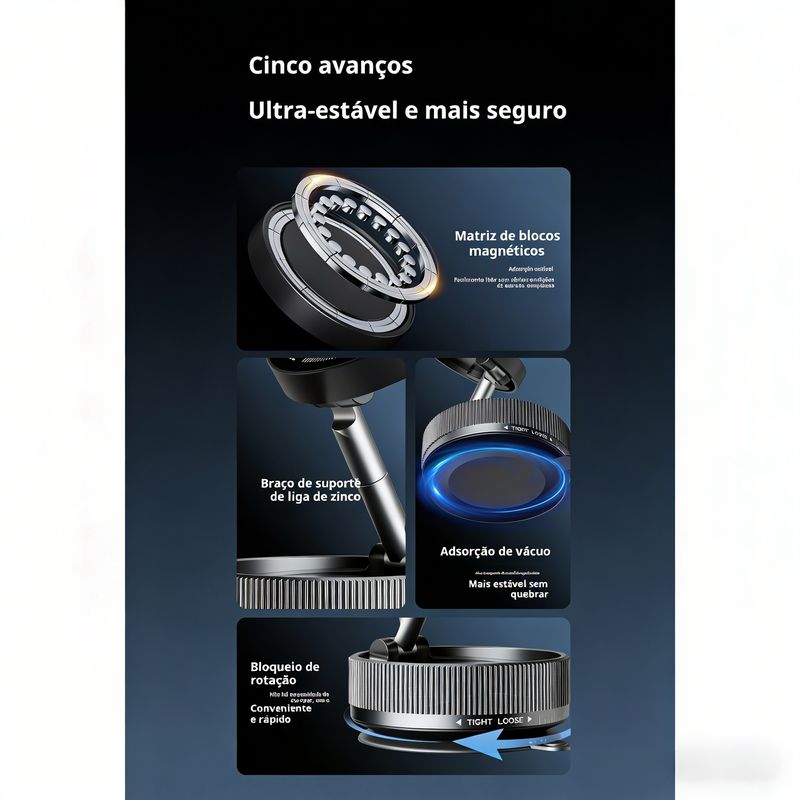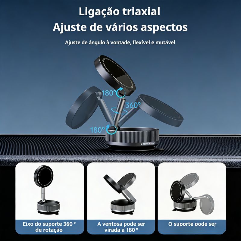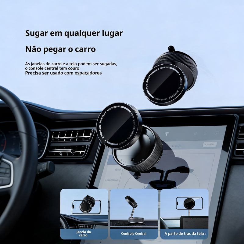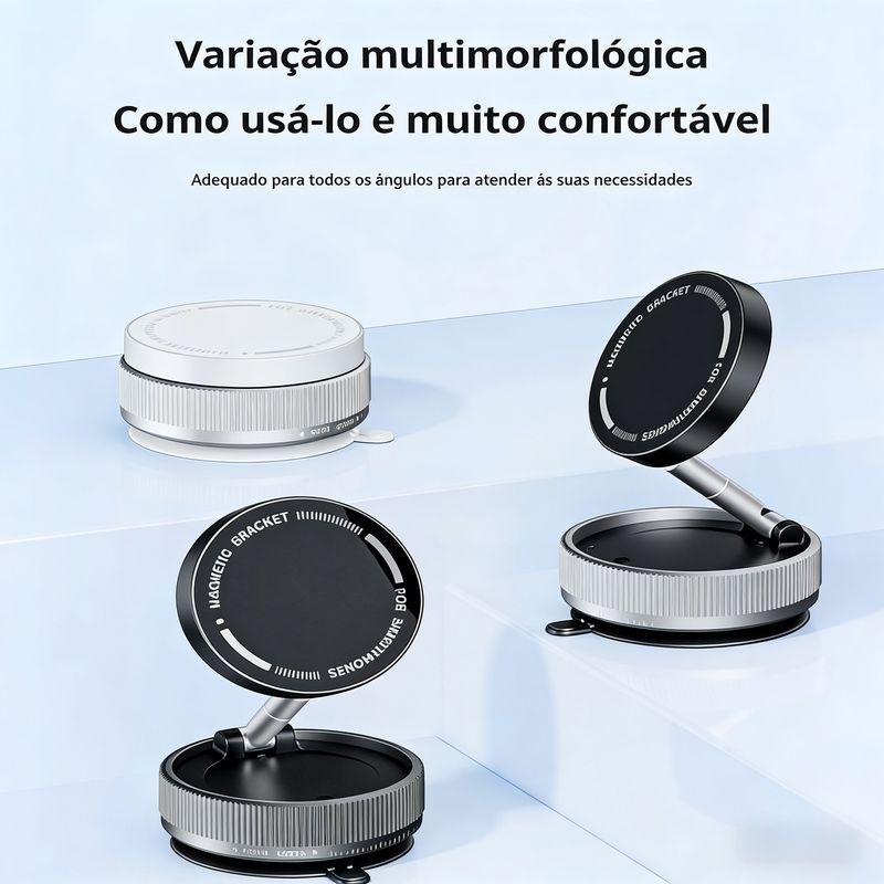 Suporte de navegação magnético com ventosa, rotativo 360°, retrátil e dobrável