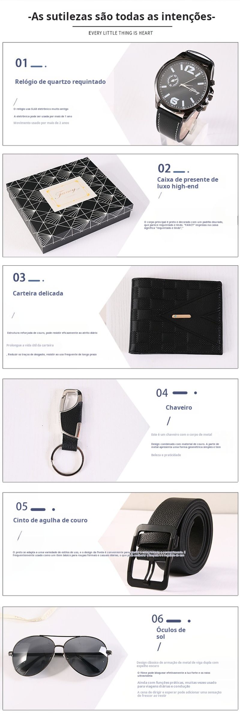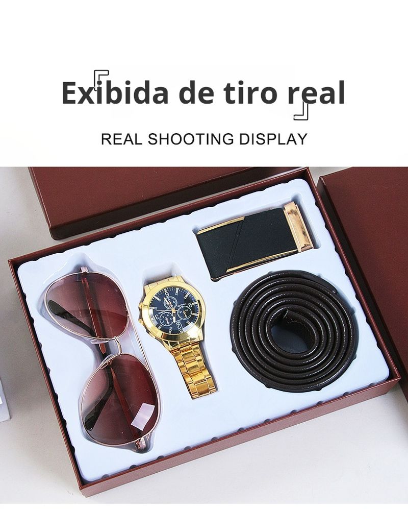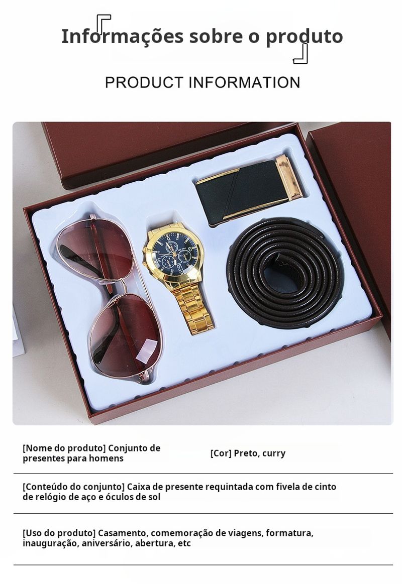 Kit Executivo: Cinto, Relógio e Óculos de Sol